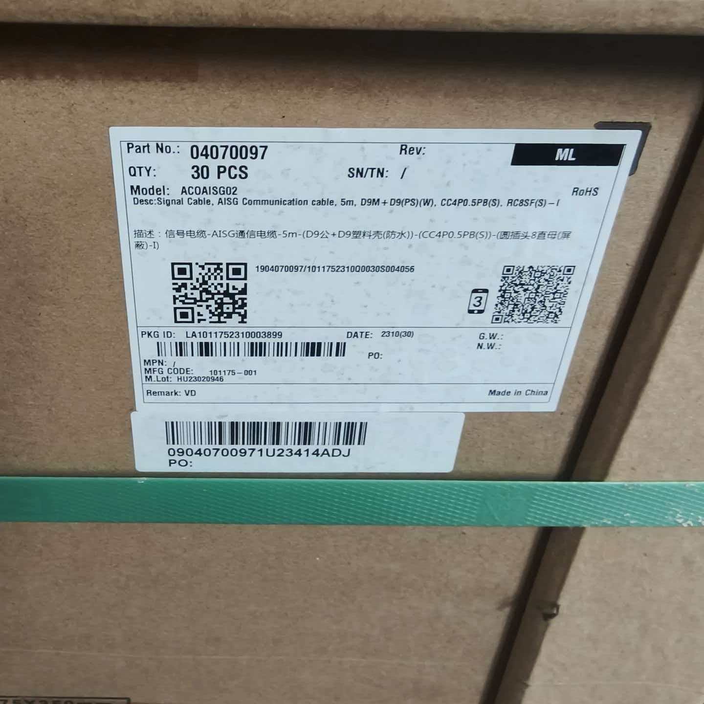 مرحباً بك في استفسارك عنأصل هواوي 04070193 AISG RET كابل AISG-DB9 3m لنظام RET.